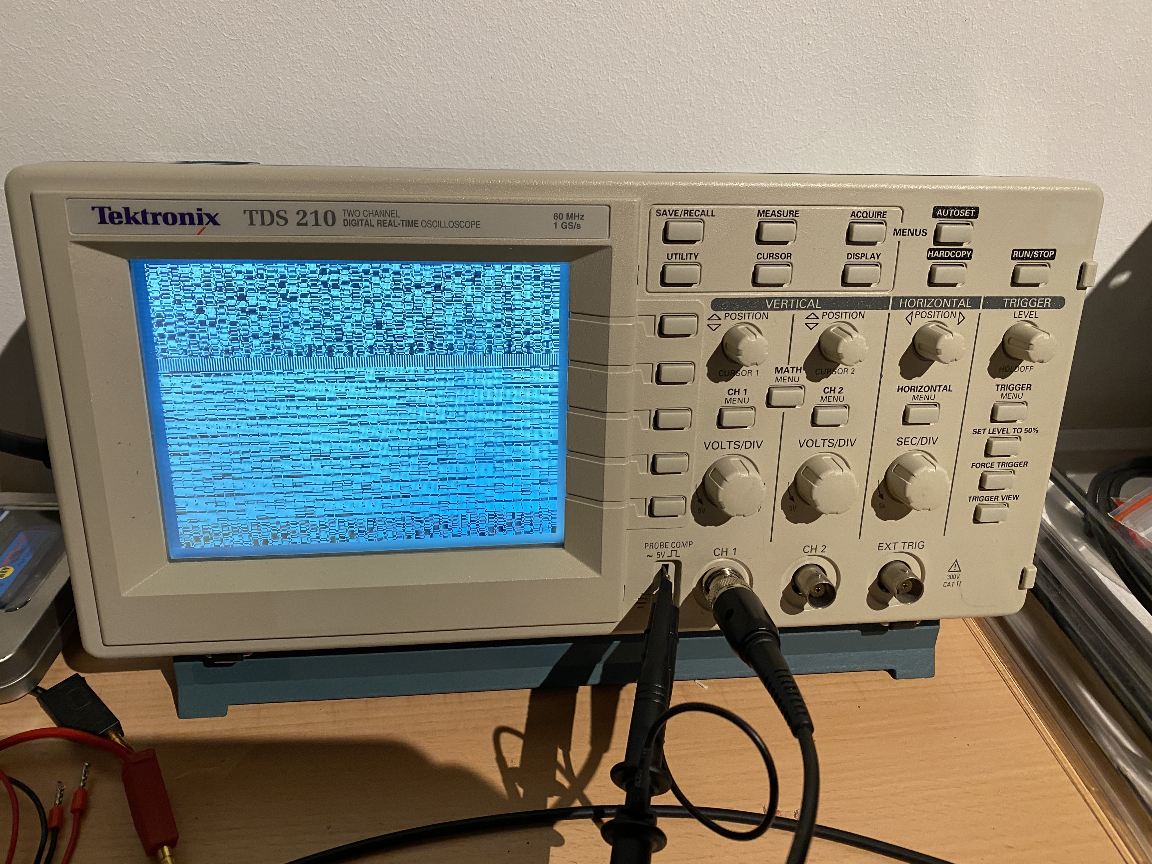 I see following artifacts on the screen of my Oscilloscope. I know, the TDS210 is old, but it still did its job well. Therefore, have anybody already seen this and maybe a hint for me, how to repair it or where it comes from?